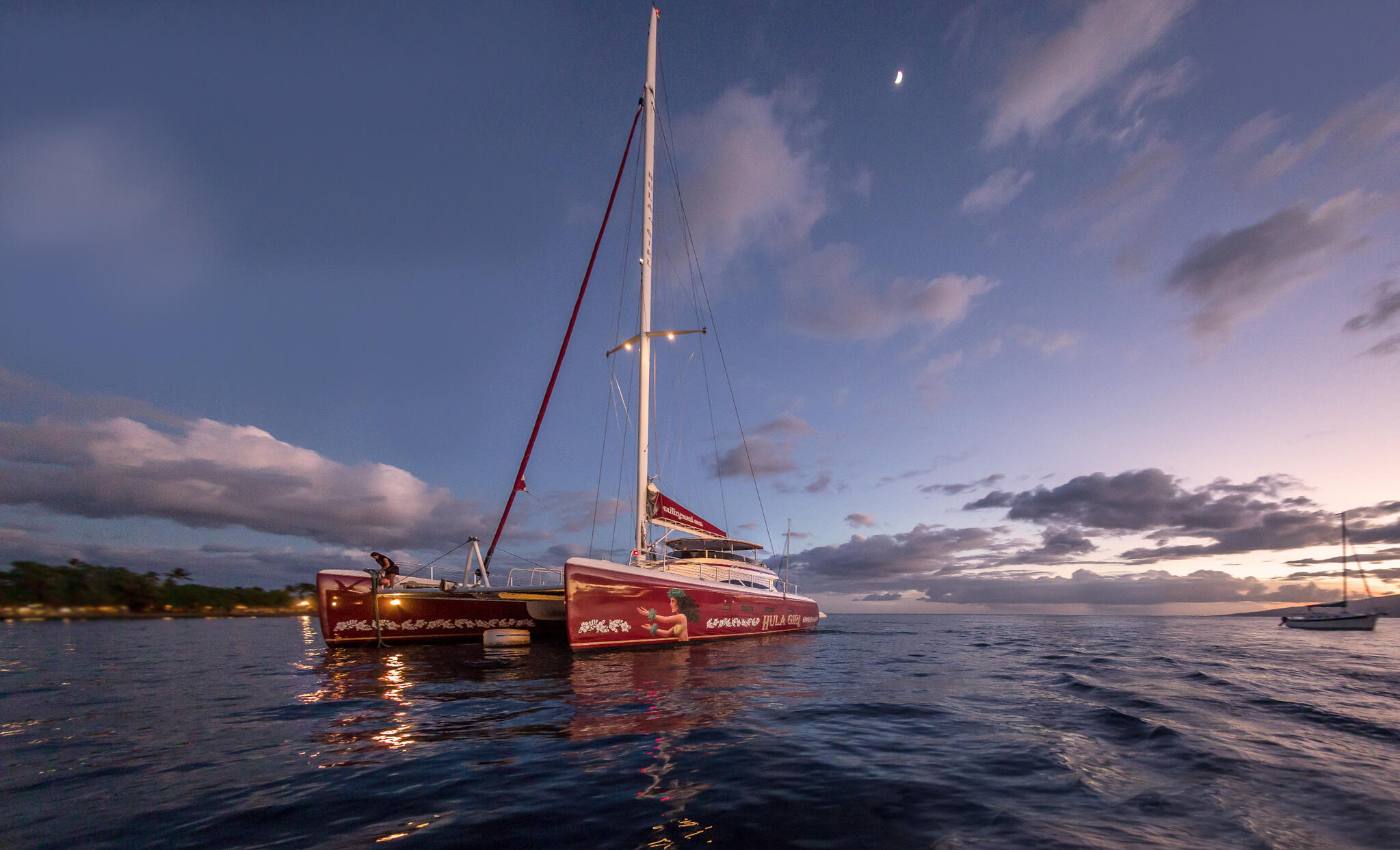 Experience Luxurious Comfort with an Unparalled Dining Experience Aboard the 65ft. Custom Designed Catamaran the Hula Girl.