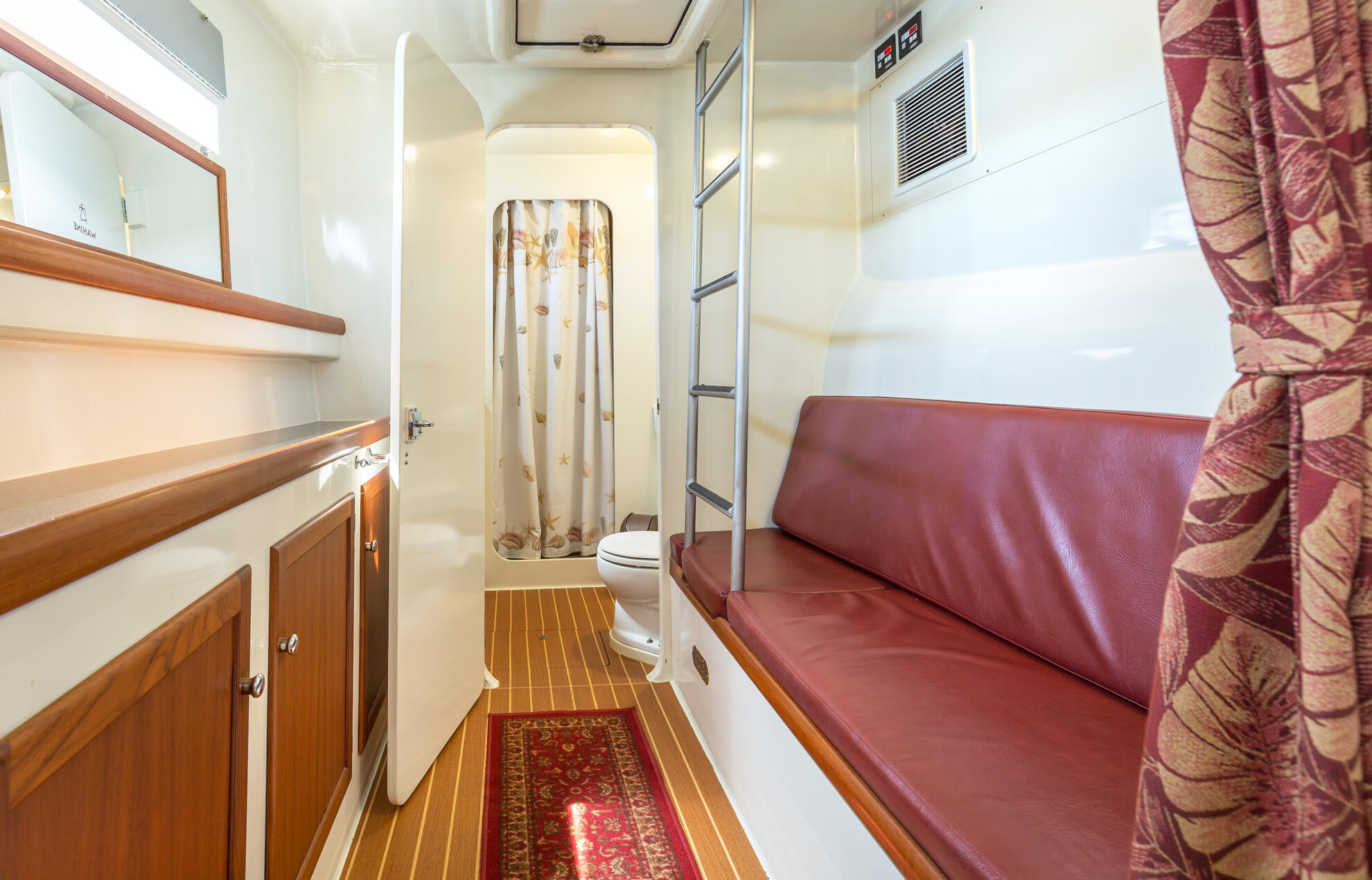 The port hull is airconditioned with a changing room and sparkling clean men's and women's restrooms with touchless facets and soap dispensers and electric flushing toilets.