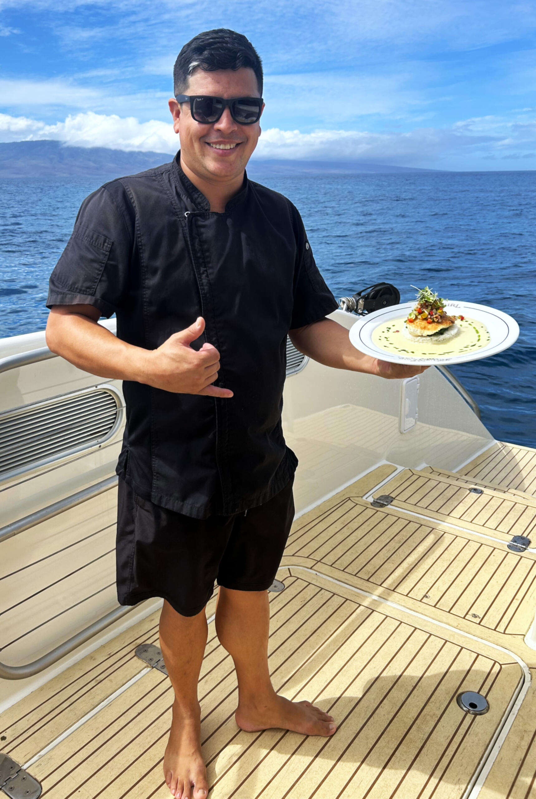 Starboard Hull features a fully licensed galley with commercial restaurant equipment and professional chefs. All meals are prepared onboard using the freshest local ingredients and served plated.